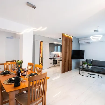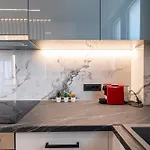 Composto da un patio, un balcone e un salottino, Marble Luxury Apartments, di 100 m^2, è dotato di un camino in pietra e finestre insonorizzate, oltre che di comfort come un impianto di climatizzazione. Nella struttura, gli ospiti possono godersi appieno il loro tempo libero grazie ai servizi multimediali disponibili, come un televisore e una TV a schermo piatto con canali satellitari, che garantiscono un'esperienza di svago piacevole. L'alloggio ha 2 camere da letto. Ci sono 1 bagno con una cabina doccia e un bagno alla francese e anche asciugacapelli e teli da bagno.